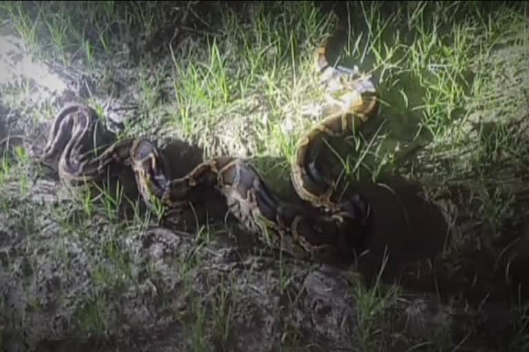 मोतिहारी में 15 फीट लंबा अजगर पकड़ा