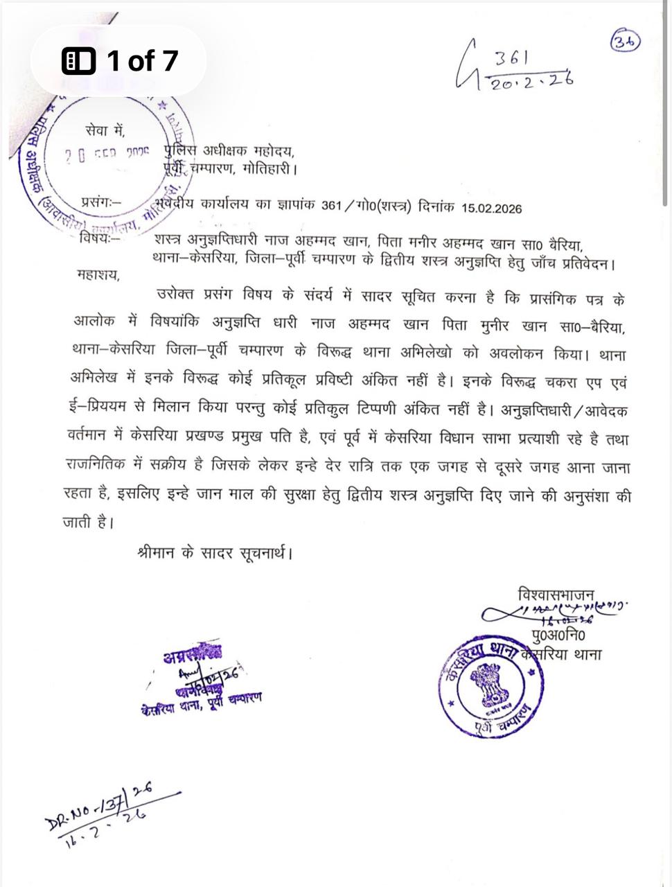 पूर्वी चंपारण: जिले में कानून को ठेंगा दिखाने और सरकारी तंत्र के साथ खिलवाड़ करने का एक ऐसा दुस्साहसिक मामला सामने आया है, जिसने पूरे महकमे की नींद उड़ा दी है। केसरिया के प्रखंड प्रमुख पति और कुख्यात अपराधी नाज अहमद खान ने सरकारी मुहर और पुलिस अधिकारियों के फर्जी हस्ताक्षरों के सहारे जिला प्रशासन की आंखों में धूल झोंकने की नाकाम कोशिश की। इस पूरे 'मास्टरमाइंड' खेल का पर्दाफाश करते हुए पुलिस अधीक्षक स्वर्ण प्रभात ने न केवल षड्यंत्र को नाकाम किया, बल्कि अपराधियों के खिलाफ युद्ध स्तर पर कार्रवाई शुरू कर दी है।