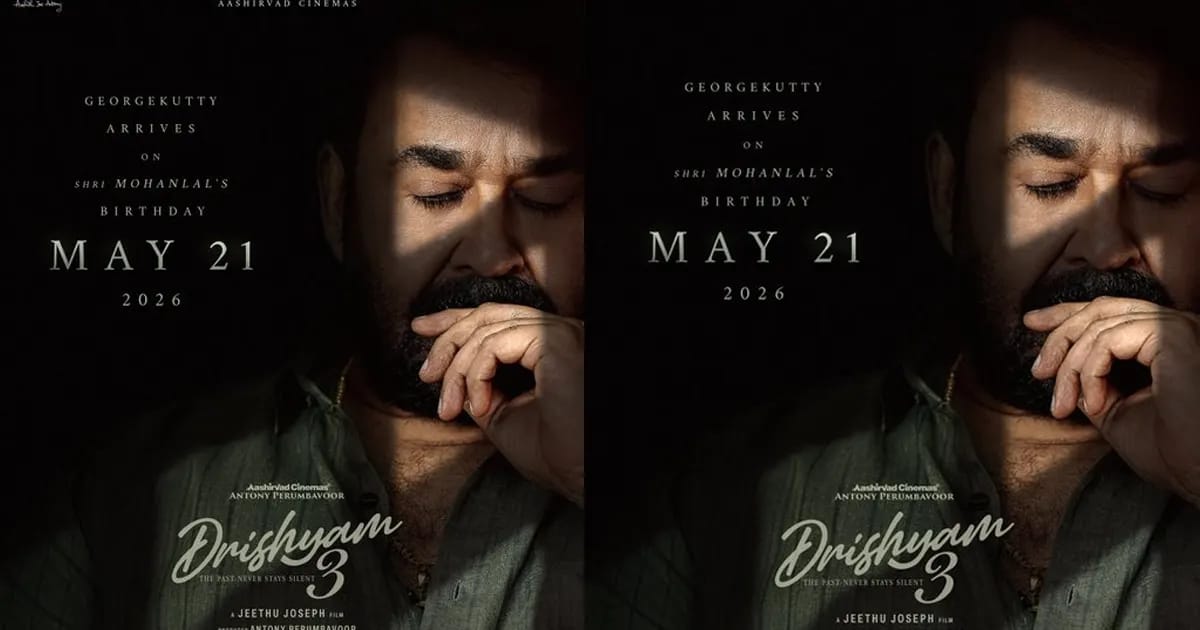 मलयालम सिनेमा की सबसे चर्चित क्राइम-थ्रिलर फ्रेंचाइजी ‘दृश्यम’ के तीसरे भाग को लेकर बड़ा अपडेट सामने आया है। सुपरस्टार मोहनलाल की बहुप्रतीक्षित फिल्म ‘दृश्यम 3’ का पहला आधिकारिक टीज़र 29 अप्रैल को शाम 5 बजे जारी किया जाएगा। मेकर्स की इस घोषणा के बाद सोशल मीडिया पर फिल्म को लेकर चर्चा तेज हो गई है और फैंस बेसब्री से टीज़र का इंतजार कर रहे हैं।