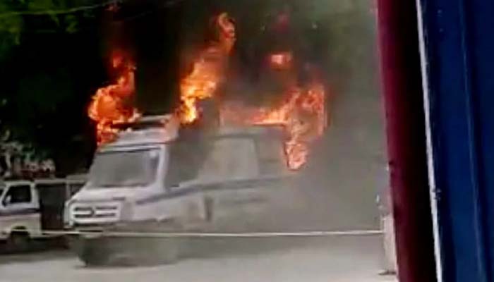 चलती एंबुलेंस में लगी आग, मरीज समेत