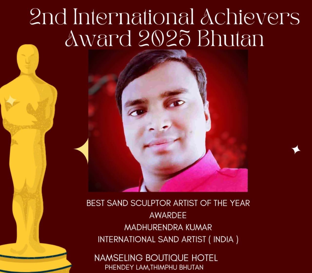 भूटान: मधुरेंद्र को “बेस्ट सैंड स्कल्पचर आर्टिस्ट